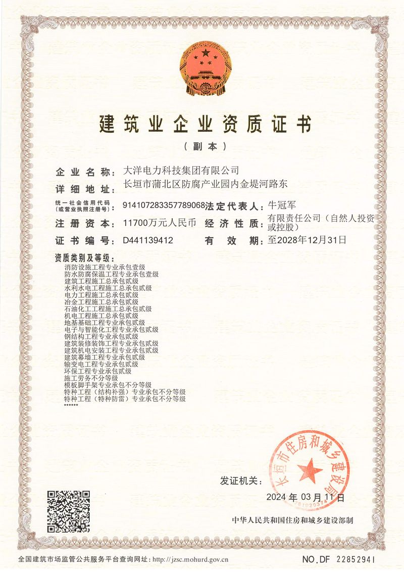您好,歡迎進入大洋電力科技集團有限公司官方網站!
