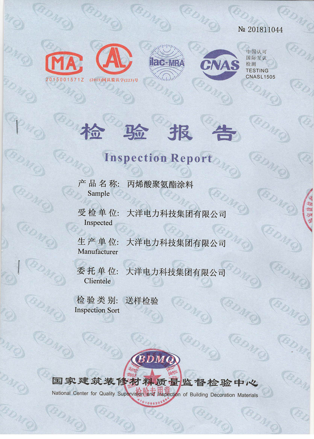 丙烯酸聚氨酯涂料檢驗(yàn)報(bào)告