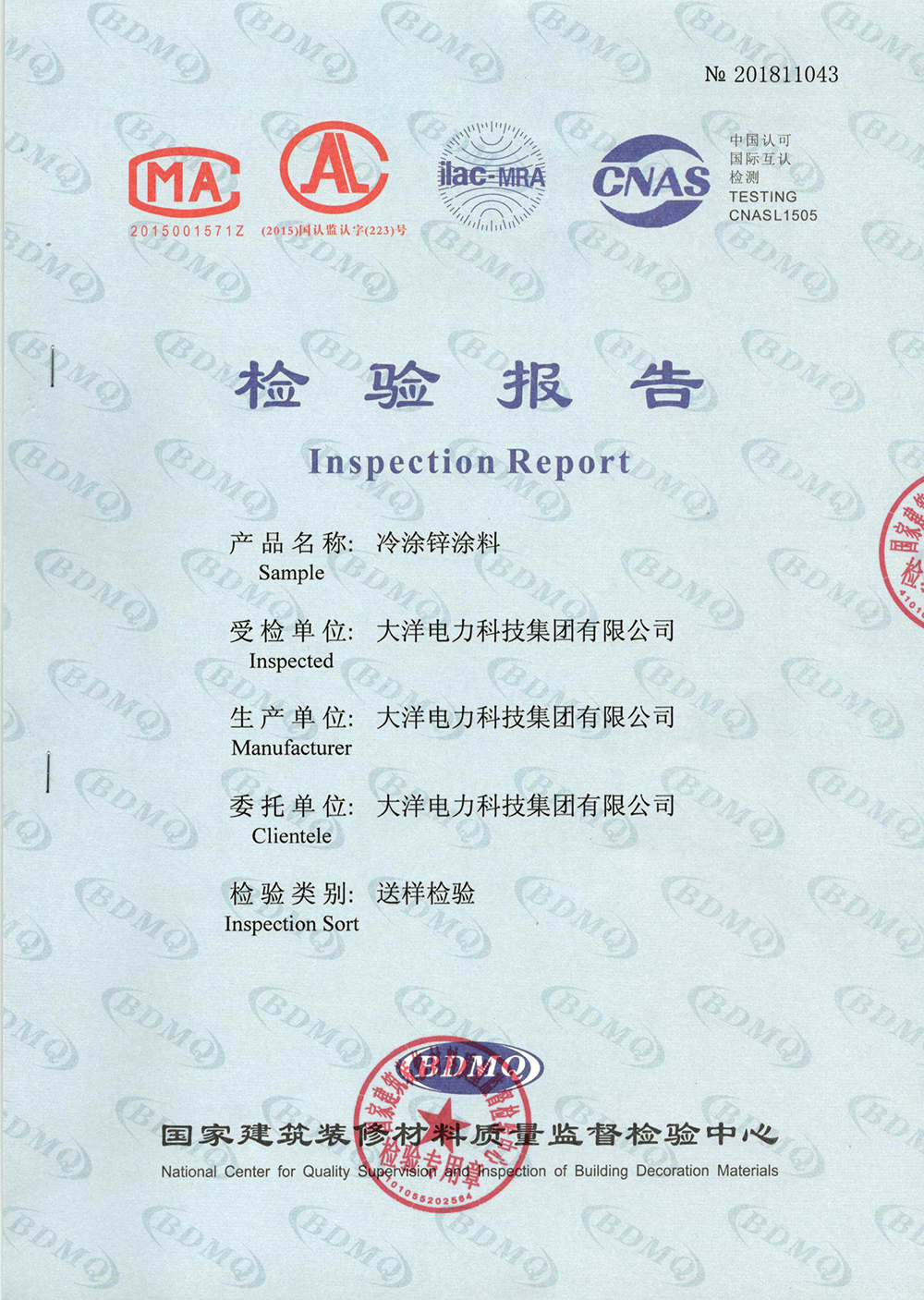 冷涂鋅涂料檢驗(yàn)報(bào)告
