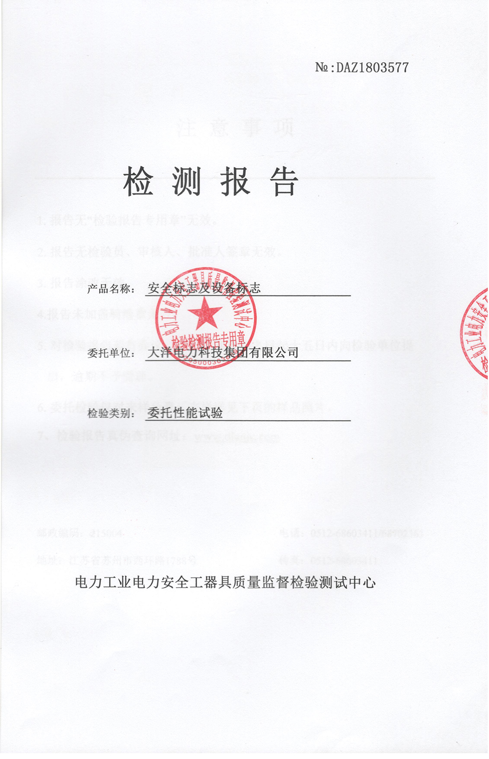 安全標(biāo)志及設(shè)備標(biāo)志檢測報(bào)告